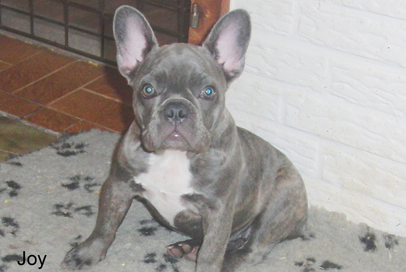 blauen Rüden, wird sie wieder blau vererben, da Mutter Joy auch blau ist.